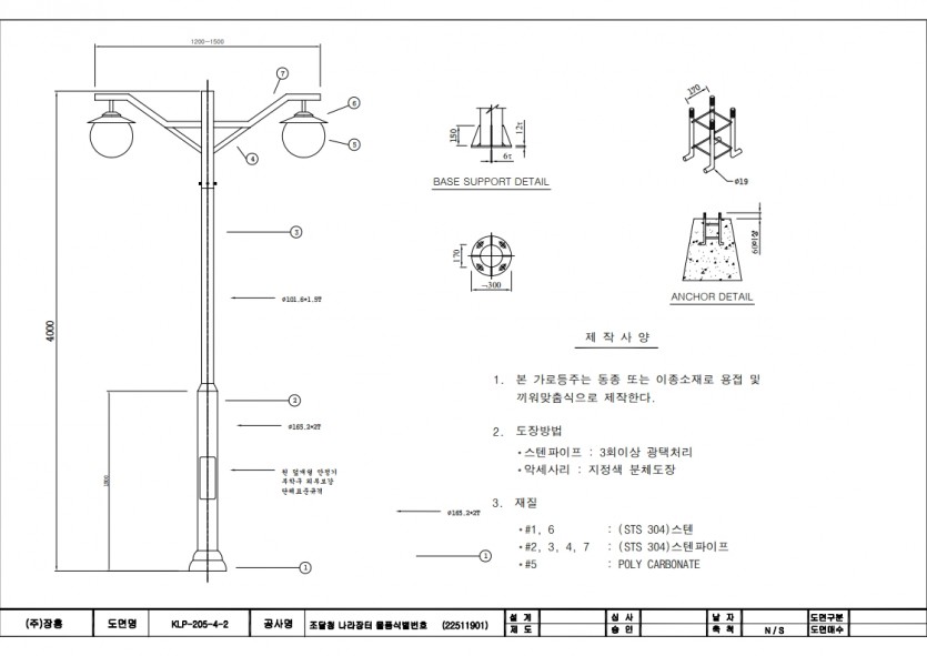 등기구, 베이스커버, 배너걸이, 안정기, 램프 별도, 등주두께:1.5~2mm