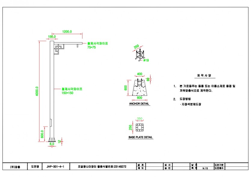 JHP-301-4-1, 4m, 1등용, 사각1단형