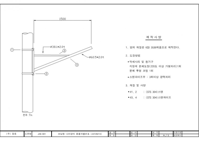 페이지 정보 목록 본문 JHA-001, 암대 물품식별번호 24728213 제품사양 크기(길이) 1500mm 재질 스테인리스강 종류 암대 옵션/기타 등기구, 안정기, 램프 별도 표면처리방식 지정색 분체도장 자료다운로드 외형도 .