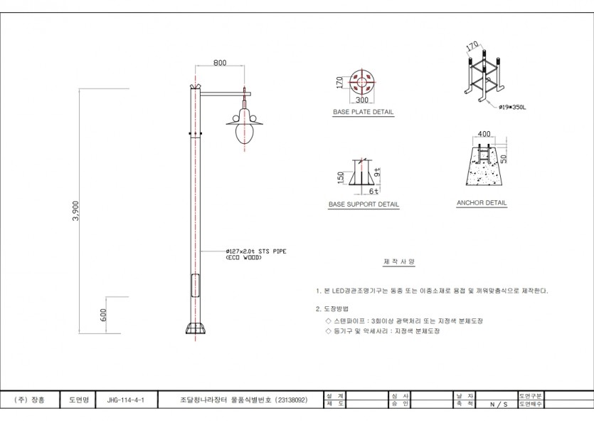 페이지 정보 목록 본문 JHG-114-4-1 물품식별번호 23803252 제품사양 소비전력 50W 크기 1200*600*3900 재질 STS304 정격전압 AC220 용도 공원등 자료다운로드 외형도 .
